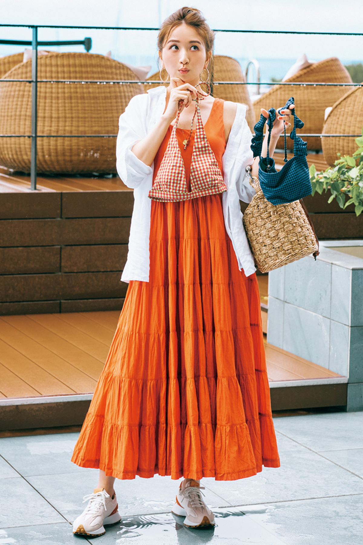 朝からホテルのジムで体を動かして、インフィニティプールで恋のことを考えながらゆっくりして…。なにこれ、平和すぎる。お日様が沈んだら、岩盤浴で汗を流そう!バッグ¥24,200(ルル・ウィルビー/アルアバイル)スニーカー¥11,990(ニューバランス/ニューバランスジャパンお客様相談室)めがね¥19,800(フルラアイウェア/デリーゴジャパン商品センター)時計¥10,450(ベイビージー/カシオ計算機お客様相談室)