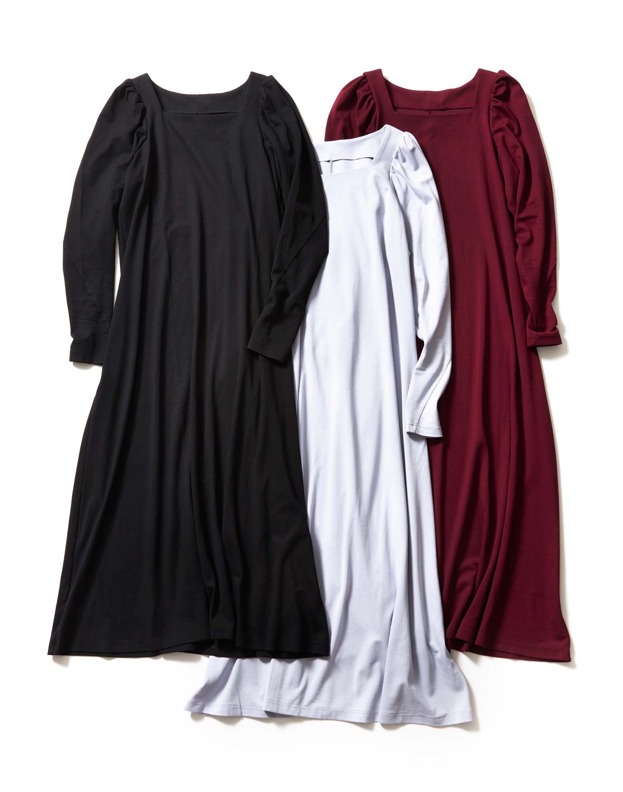 スクエアネックワンピース(ブラック、アイスブルー、バーガンディ)¥19,580(アイコンズ フロア)