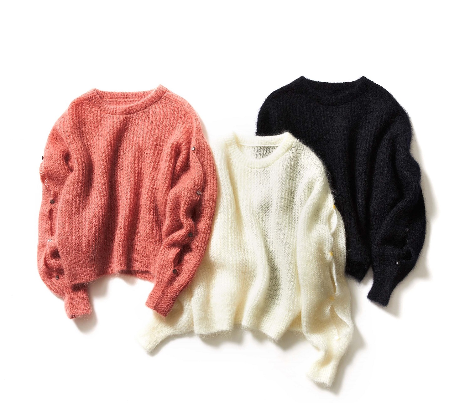 袖開きモヘアニット(ピンク・ホワイト・ダークネイビー)各¥18,480(アイコンズ フロア)