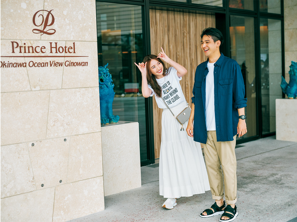 「ホテルのエントランスにあるブルーのシーサー前にいますね」ってLINEをもらってど緊張!オールホワイトのコーデで女のコっぽくしてみた。バッグ¥34,100(アタオ/スタジオアタオ)スニーカー¥11,990(ニューバランス/ニューバランスジャパンお客様相談室)シルバーネックレス¥35,750(アルポ/ZUTTOHOLIC)コインネックレス¥22,000(マリハ)[メンズ]シャツ¥9,990 Tシャツ¥3,990パンツ¥10,400(すべてバナナ・リパブリック)サンダル¥9,350(ニューバランス/ニューバランスジャパンお客様相談室)時計¥15,400(ジーショック/カシオ計算機 お客様相談室)