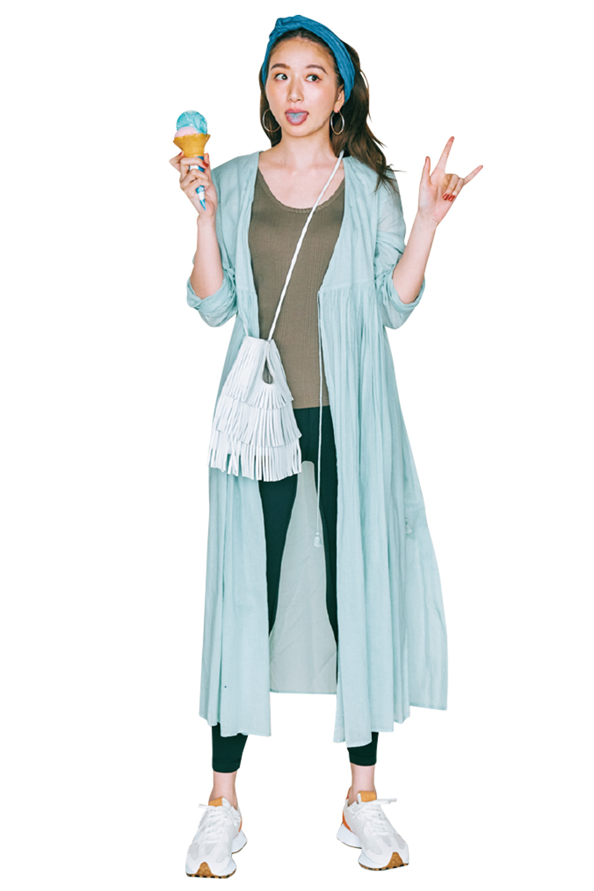 いろいろな気持ちを整えるために朝からビーチでヨガをしたり、散歩したり。運動後のブルーシールのアイスがたまらなく美味しい。ちなみにフレーバーは、ブルーウェーブとストロベリーをダブルで食べるのがSHIKA★PPI流。バッグ¥22,880(ノマディス)スニーカー¥11,990(ニューバランス/ニューバランスジャパンお客様相談室)ヘアバンド¥6,930(Chapeaud’ O/Chapeaud’ O東急プラザ銀座店)ピアス¥8,800(アビステ)