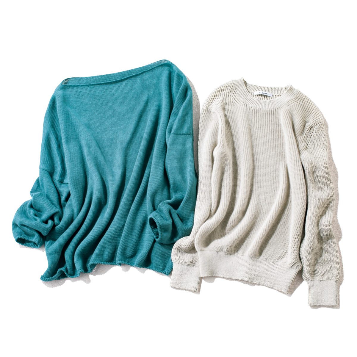 ざっくりと編まれたサマーニットを「羽織る」ではなく「かぶる」で作るゆるいニュアンスが今の気分にフィット。休日のワンシーンをセンスよく彩ります。【右】どんなワンピにもまろやかな品のよさを添えるライトベージュ。リネン混素材のシャリッとしたニット生地が、涼しげな印象を演出。ニット¥24,200(スローン)【左】肩周りを華奢に魅せるネックラインが頼りになります。知的なムードが休日カジュアルを格上げ。ニット¥23,100(カレンソロジー/カレンソロジー新宿)