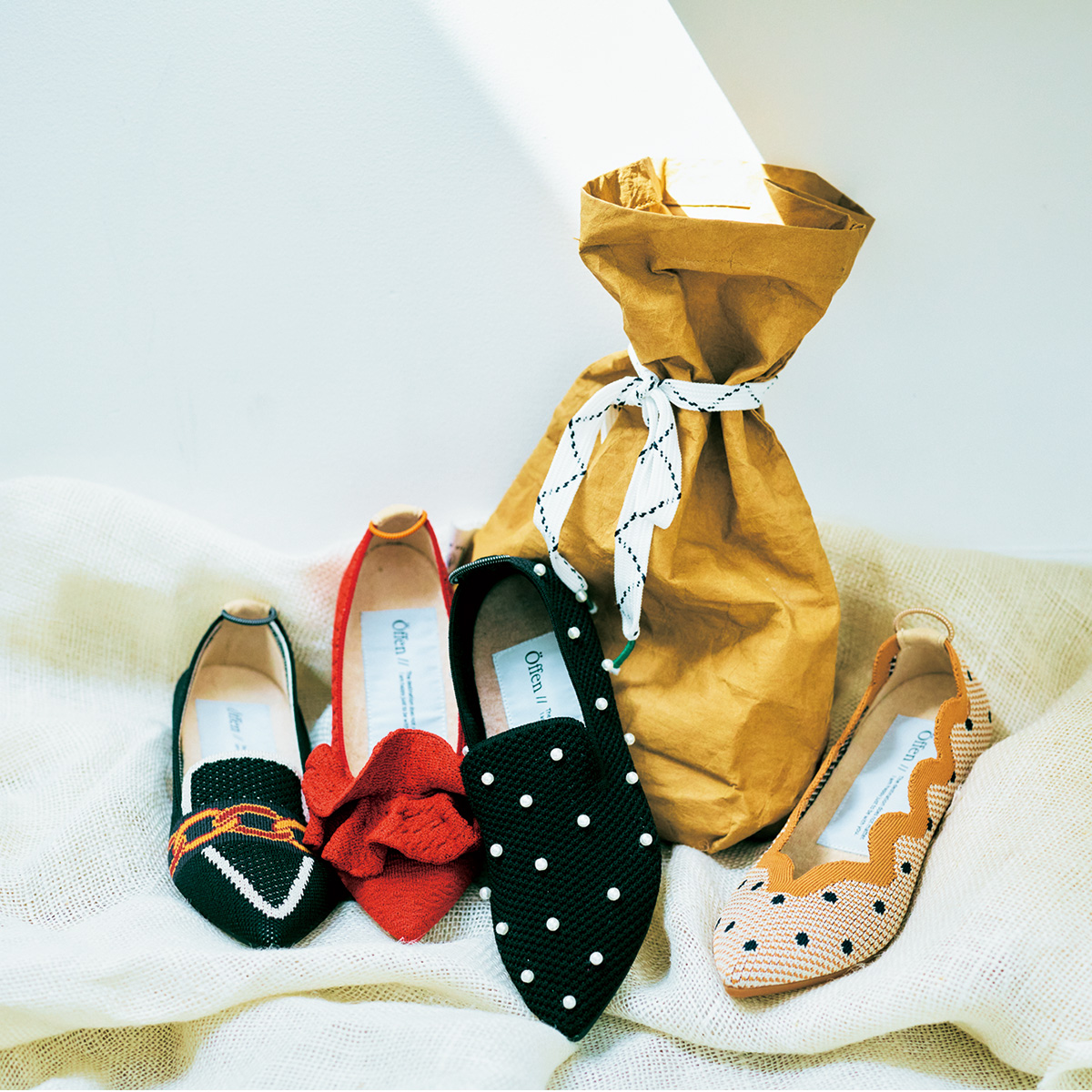 数々のブランドでクリエイティブディレクターとして活躍した日坂さとみ氏が手掛けるブランド。シューズはすべて使用済みのペットボトルからリサイクルされた糸で作られています。高品質なポリエステル素材なので水洗いしても大丈夫!また、シューズは、靴箱ではなく、リユースを目的としたペーパーバッグに入れて渡されるのもエコな活動のひとつ。こちらも水洗いできる丈夫な再生紙で、観葉植物のプランターカバーや野菜の保存袋として活躍します。