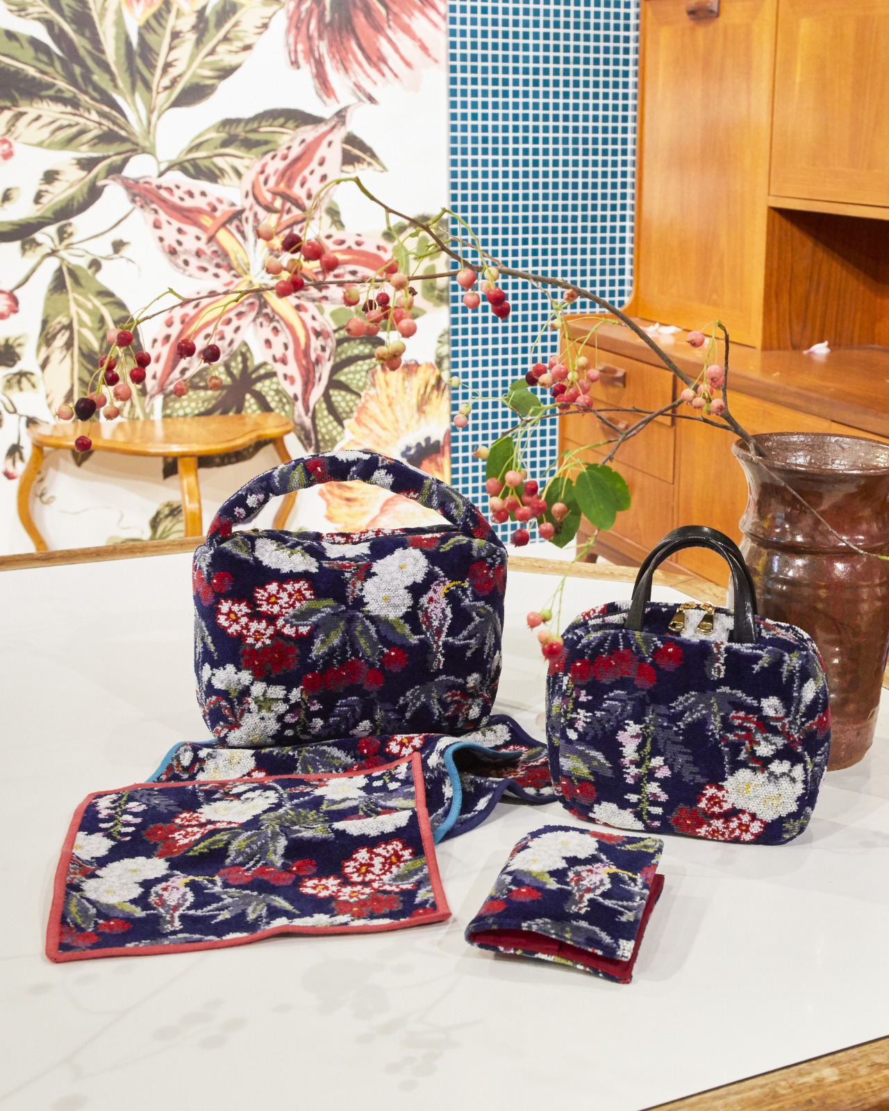 今回のコラボでは、KEITA MARUYAMAデザイナーの丸山敬太とTHE TOKYOディレクターの澤之井頌子がそれぞれの感性を持ち寄り、厳選したKEITA MARUYAMA人気のアーカイブテキスタイル、”Botanical Cherry柄”を採用。フェイラー独自の美しい発色やふくらみのあるシュニール織で、立体感と奥行きのある表情に仕上がっています。特別感たっぷりのアイテムは自分へのご褒美買いはもちろん、大切な人への贈り物としてもおすすめ!