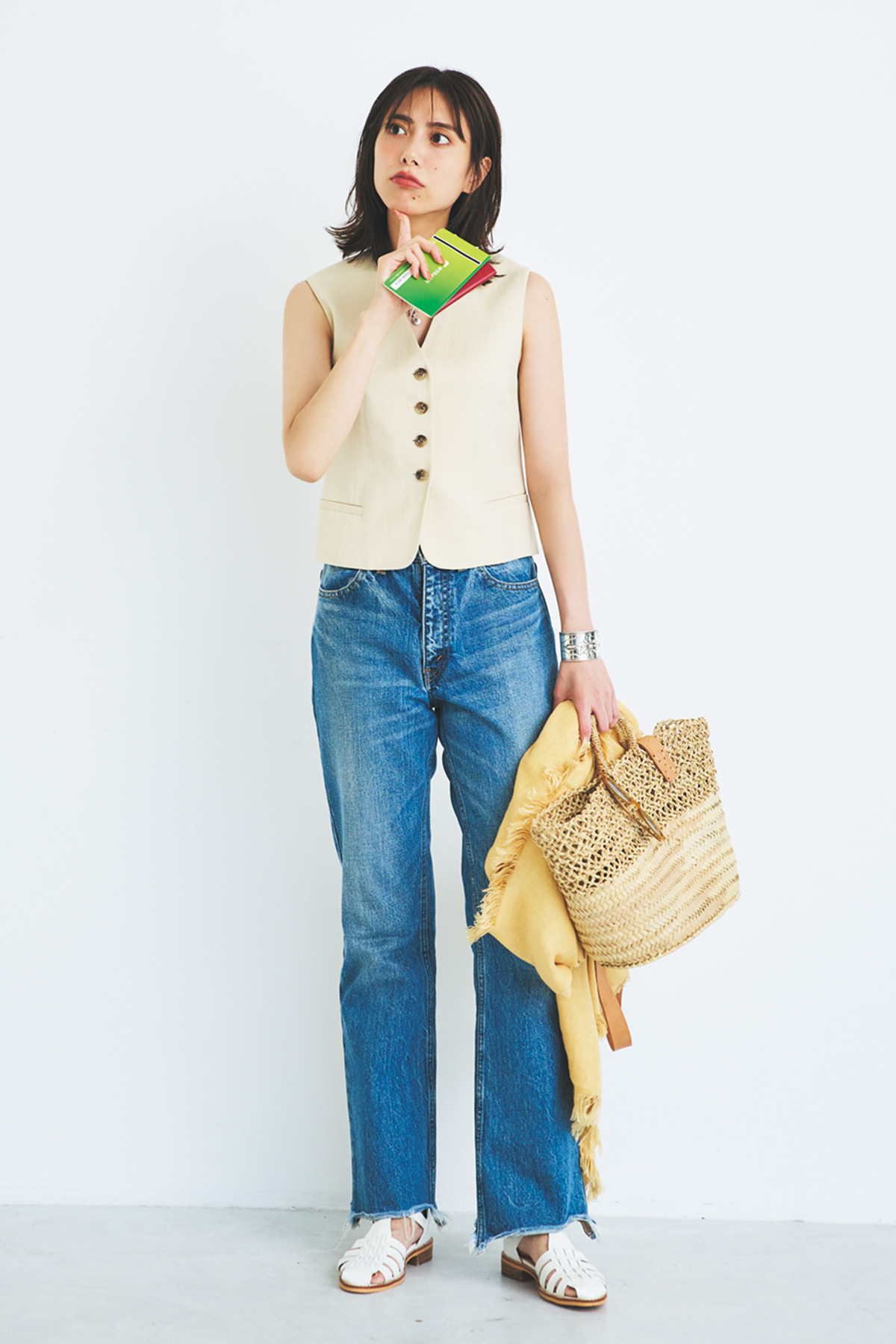 トレンド最前線なショートジレは、トップスや羽織りとして自在に使える!どんな装いも簡単アップデート。ジレ¥13,500(COS/COS 銀座店) -