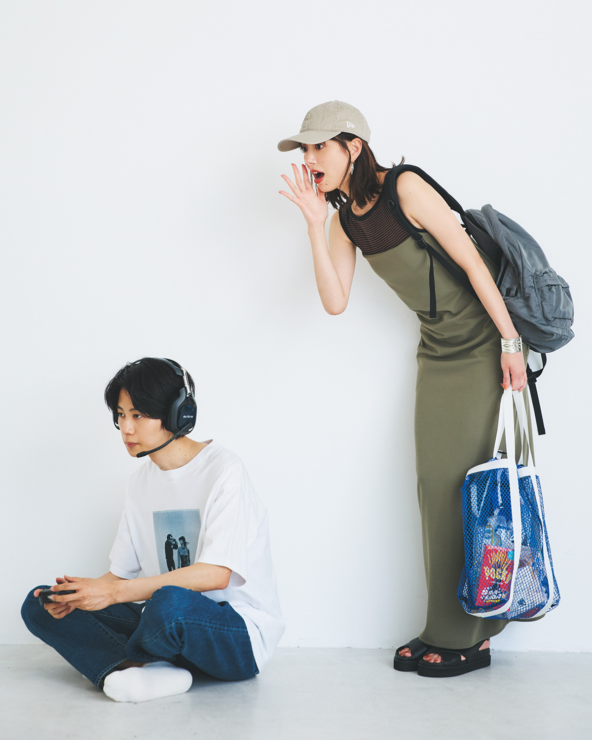 またやってる…ほんっとにゲーム好きだよね!もっとキャリアアップの勉強とか副業とか、向上心ないの!?バックパック¥18,700(フィルメント)メッシュバッグ¥7,920(バテンウェア/アリガインターナショナル)サンダル¥¥17,600(銀座かねまつ/銀座かねまつ6丁目本店)キャップ¥4,180(ニューエラ)ピアス¥5,250(アビステ)バングル¥52,500(ノースワークス/UTS PR)