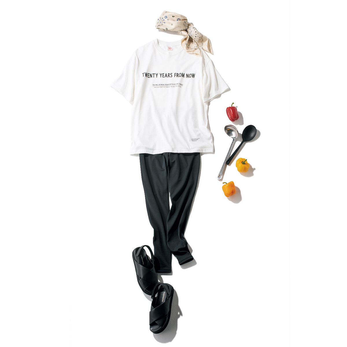 将来のマイホーム購入に備えて節約、貯金、投資…。食事もやっぱり経済的な自炊が一番!今日はインスタで見たレシピに挑戦しよう。ママも姉も料理上手で家庭が円満だし、私も栄養バランスがよくて見栄えのいい料理のレパートリーを増やさなくっちゃ!サンダル¥17,600(銀座かねまつ/銀座かねまつ6丁目本店)スカーフ¥17,600(マニプリ)