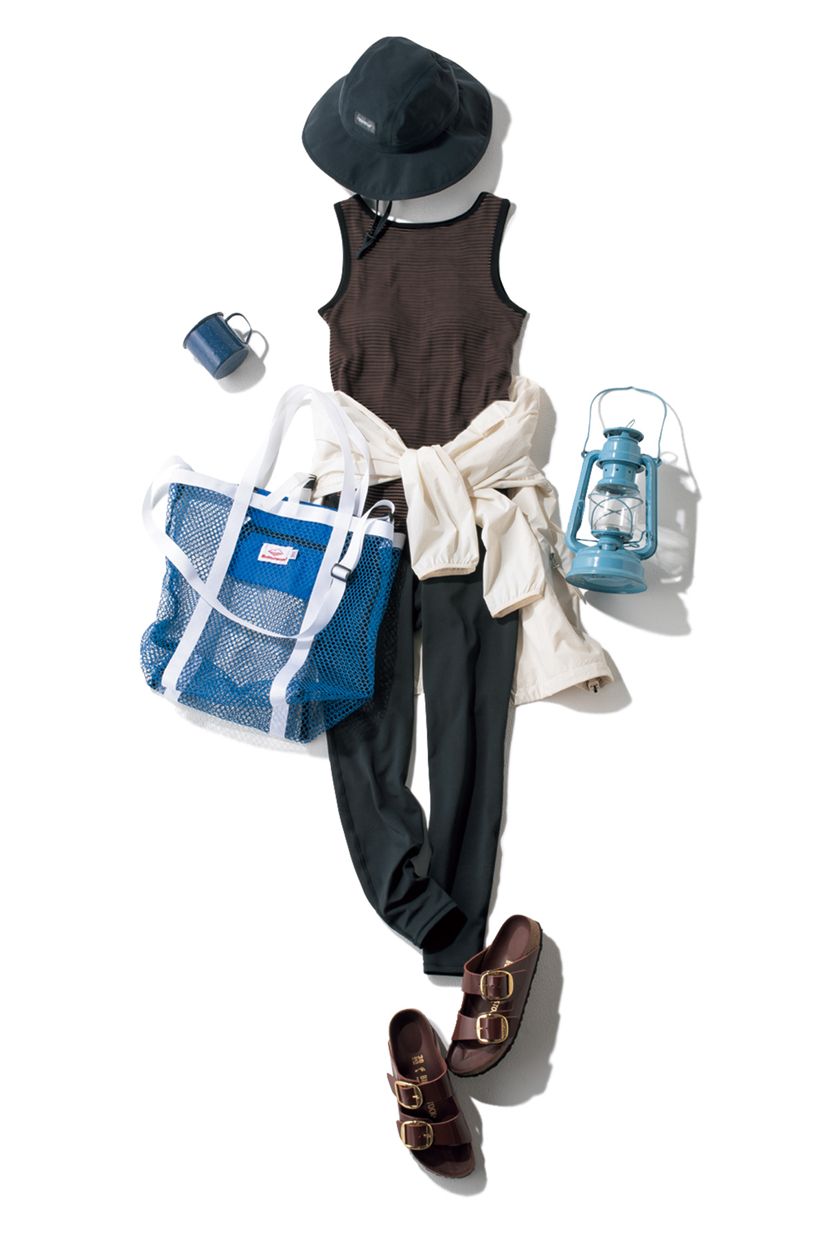 朝ヨガしてコーヒーを淹れてほっと一息。おかげでリフレッシュできたし、なんだかこの先の未来が明るくなって来た気がする!ランタンって見た目も可愛いし、炎を見てると癒される…。やばい、私もランタン沼に陥りそう。メッシュバッグ¥7,920(バテンウェア/アリガインターナショナル)ハット¥13,200(CA4LA/CA4LA プレスルーム)