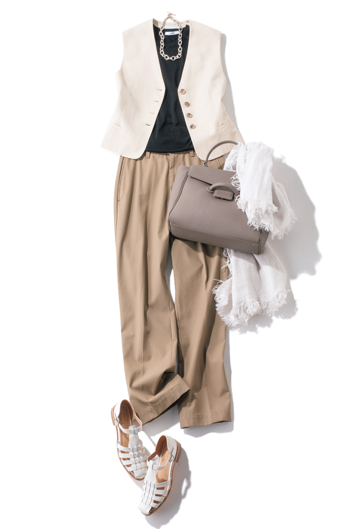 「お、いい旦那だな~!今期の成績も期待してるぞ」と上司。相変わらず圧強いけど(笑)、新婚を気遣ってくれたのかな。バッグ¥56,100(ヴァジック/ヴァジックジャパン)サンダル¥20,680(アルテサノス・ペル・アルアバイル/アルアバイル)ストール¥30,800(アソース メレ/アイネックス)ネックレス¥11,000(イン ムード/フォーティーン ショールーム)