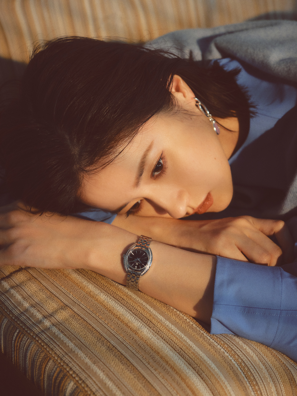 1967年に登場し、人気を博したモデル「62GS」のベゼルレスのシルエットを継承しつつ、アーチを描くカーブフォルムで女性の手元を美しく引き立てるデザイン。腕に優しく馴染み、装着感も心地よい。ガラスサイドにあしらったダイヤモンドは複数のサイズを組み合わせ立体的にセットすることで、流れるような輝きを演出。年差±10秒の正確な時を告げる高精度でビジネスシーンでも頼りに。