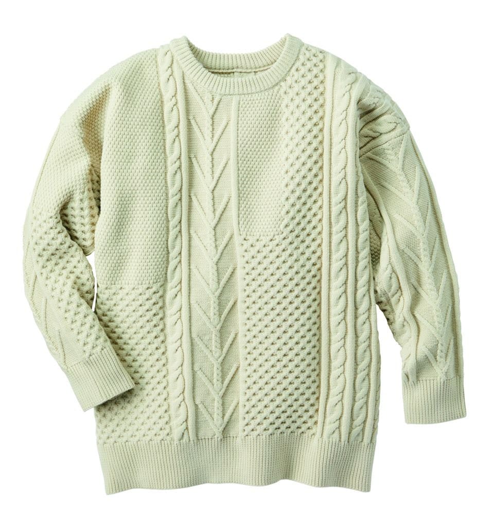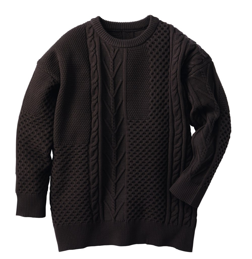 個性的なケーブル(綱のようにねじれた)模様で、温かみのある一着。ワークマン女子と大型SC内WORKMAN Plus 店で販売。