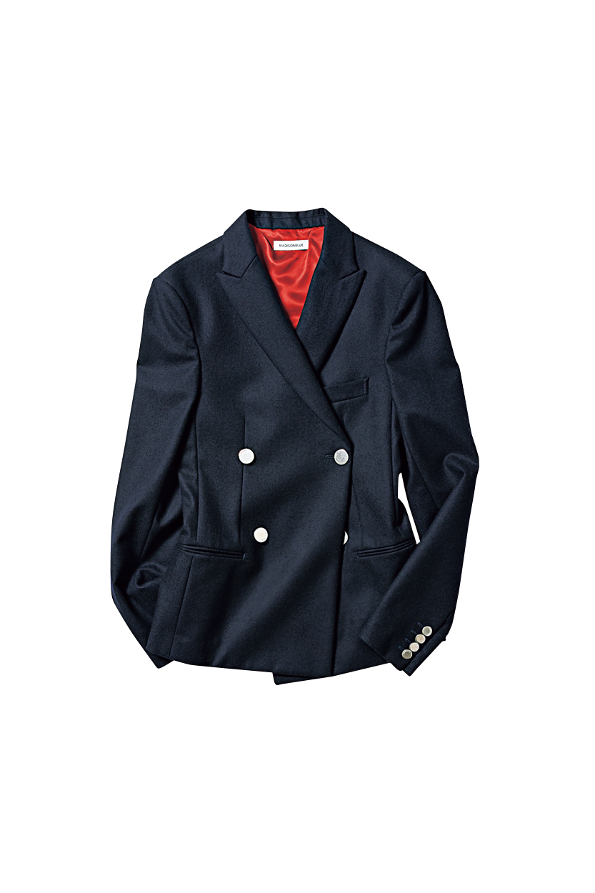 今季多く出ているダブルジャケットは、「知的な感じがイイ!」「いいとこのお嬢さん」と男性からの好感度も高い。ジャケット¥135,000(マディソンブルー)