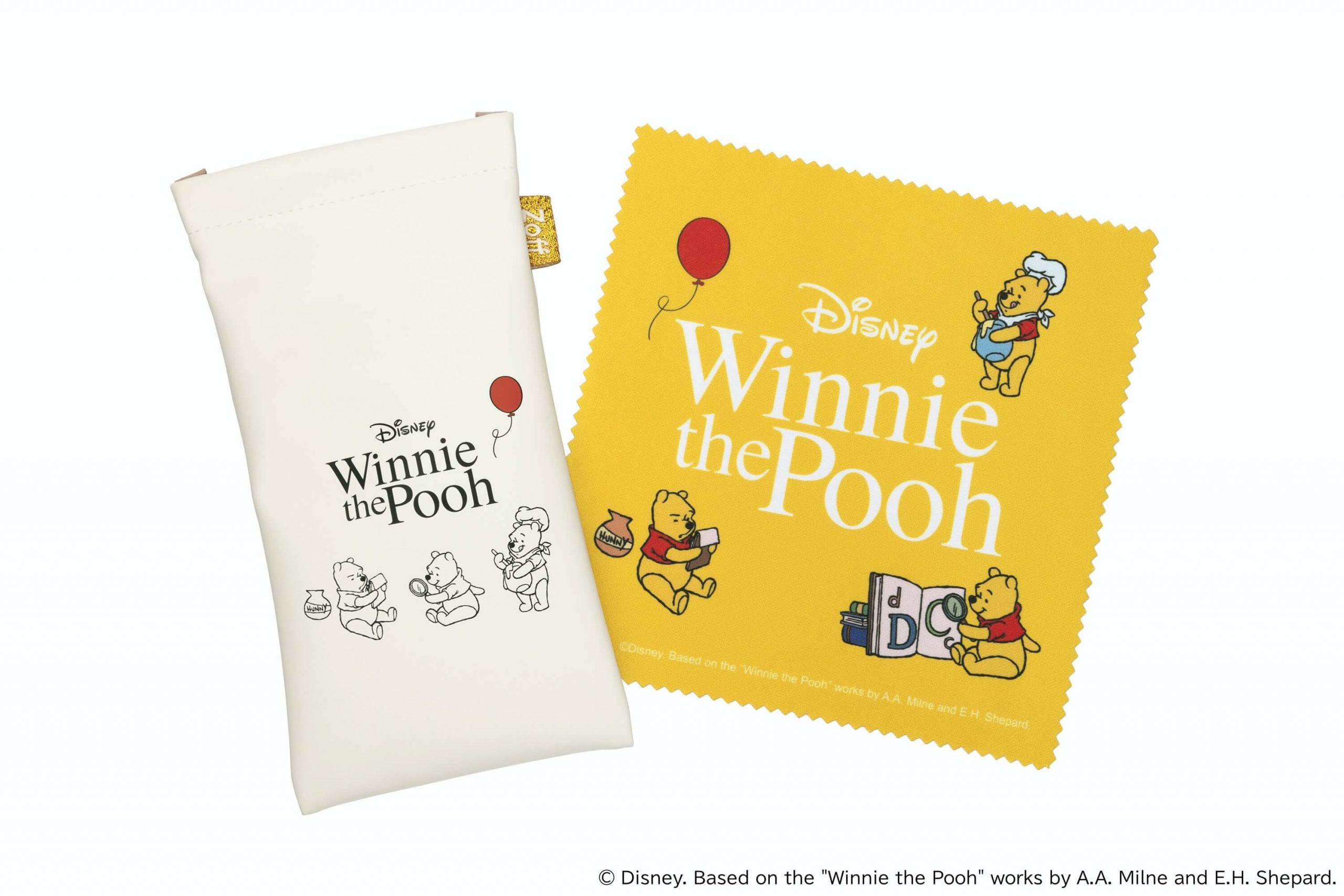 全てのフレームに、 オリジナルケースとメガネ拭きがセット。プーさんの描きおろしオリジナルイラストが入った、 Zoffでしか手に入らないグッズです。