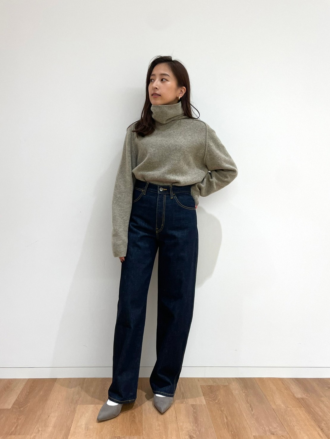 プレミアムラムタートルネックセーター(長袖)¥3,990[Mサイズ着用]ラウンドジーンズ¥3,990[Mサイズ着用](すべてユニクロ ユー[ユニクロ])コンフィールタッチパンプス¥2,990(ユニクロ)