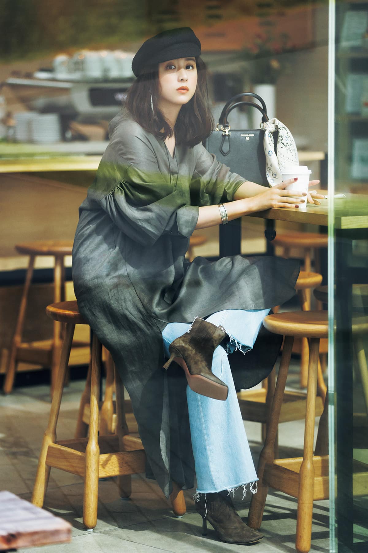 デニムにゆるりとリネンワンピを重ねれば、心地いいレイヤードスタイルが楽々完成。カットオフ&フレアな空色ブルーのデニムに、今季のオシャレマインドを託したい。デニムパンツ¥36,300(マザー/サザビーリーグ)ワンピース¥42,900(カオス/カオス表参道)キャスケット¥16,500(ラメゾン ド リリス/エストネーション)バッグ¥50,600(マイケル マイケル・コース/マイケル・コース カスタマーサービス)スカーフ¥14,300(マニプリ)ブーツ¥82,500(ペリーコ/アマン)ピアス¥17,600ネックレス¥22,000バングル¥29,700(すべてアダワットトゥアレグ)