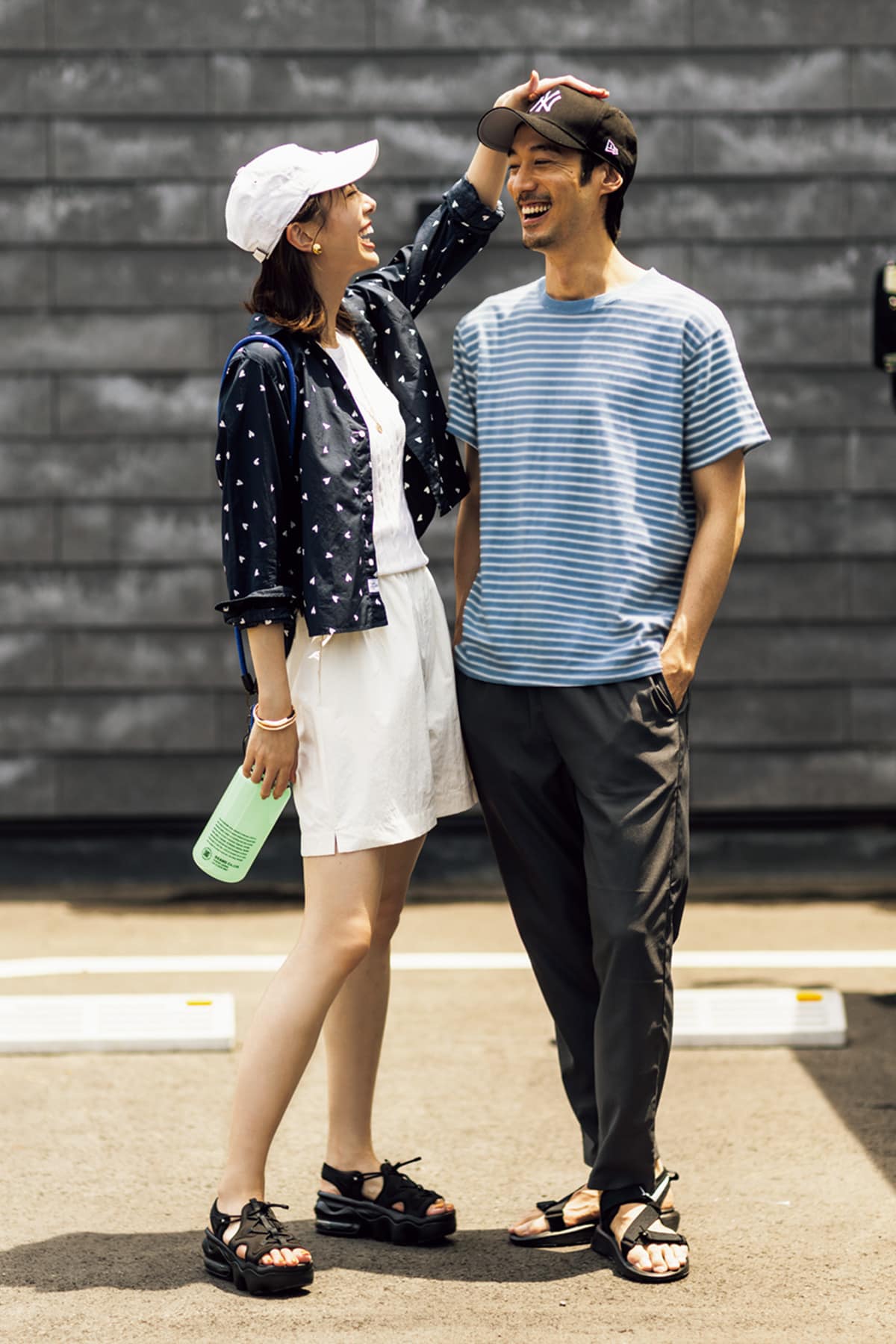 [女性]シャツ¥39,600(フランク&アイリーン/サザビーリーグ)アメリカンスリーブニット¥7,000(バナナ・リパブリック)ショートパンツ¥19,800(ガリャルダガランテ/ガリャルダ ガランテ表参道店)ストラップ¥7,700〈エクステンデッド フォトグラフィック マテリアル×ビームス〉ボトル¥2,860〈ナルゲン×ビームス〉(ともにビームス原宿)サンダル¥11,000(ナイキ スポーツウェア/NIKEカスタマーサービス)キャップ¥4,180(ニューエラ)イヤリング¥5,250(アビステ)ネックレス¥28,600(マリハ)2本バングル¥22,770(ソコ/ZUTTOHOLIC)