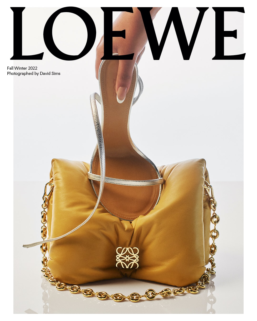 宝石のようなハンドバッグ「ゴヤ」は、ふんわりと膨らんだ「パファー ゴヤ」として進化! 天然のグースフェザーによって膨張し、ゴールドのアナグラムファスナーで仕上げられた光沢のあるナパラムスキンのボディは、まるでクッションのようなシルエットです。