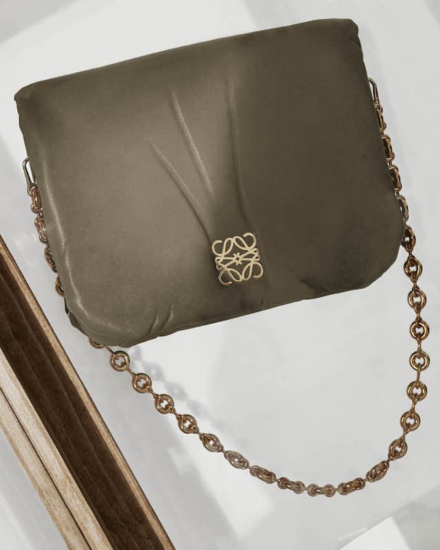 ロエベ らしさ満点のフラメンコやパズル ホーボーバッグも、同様にパファーで登場します。