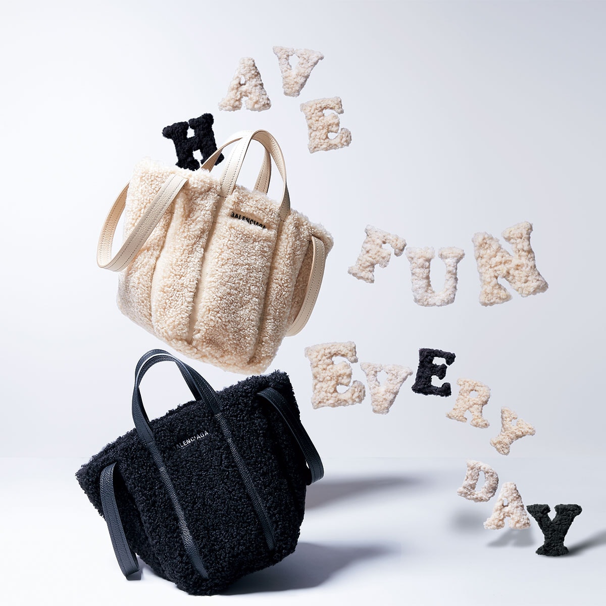 モードで革新的な世界観で私たちを惹きつけるバレンシアガ。このブランドの手にかかればトートバッグだってこんなに個性的。機能的な縦型に、一番のポイントは前後左右に付いている長さの異なるハンドル。荷物の重さやコーディネートに合わせて自由に持つことが可能です。そんなバッグの新作はふわふわで気持ちいいフェイクシアリング!今季のトレンドでもある素材は、触れるたび気分が上がります。身に着ける服やバッグ、選ぶ理由はいろいろあるけれど…幸せな気持ちになれるもの、そんなシンプルな理由で選べたならきっと今より楽しい毎日が待っているはず。