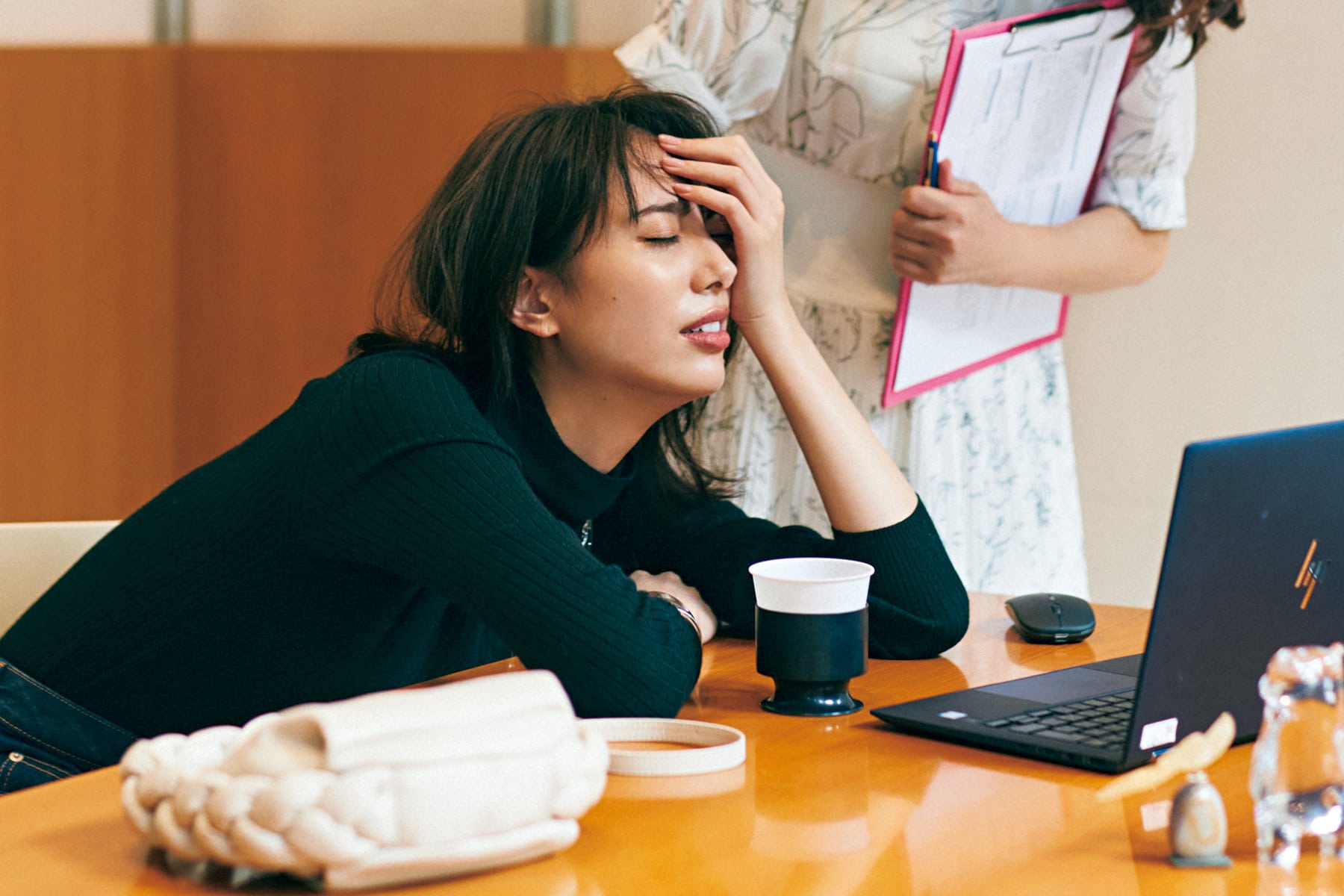 廃人のような生活をしながらも深夜に結婚相談所の”無料カウンセリング”の予約を入れて、今、カウンセラーさんの前で号泣中。バッグ¥72,600(ヘリュー/ショールーム セッション)ネックレス¥9,900〈イン ムード〉バングル¥11,550〈エイチアッシュ〉(ともにフォーティーン ショールーム)