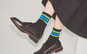 キレイめ派でも取り入れやすい「黒のラインソックス」