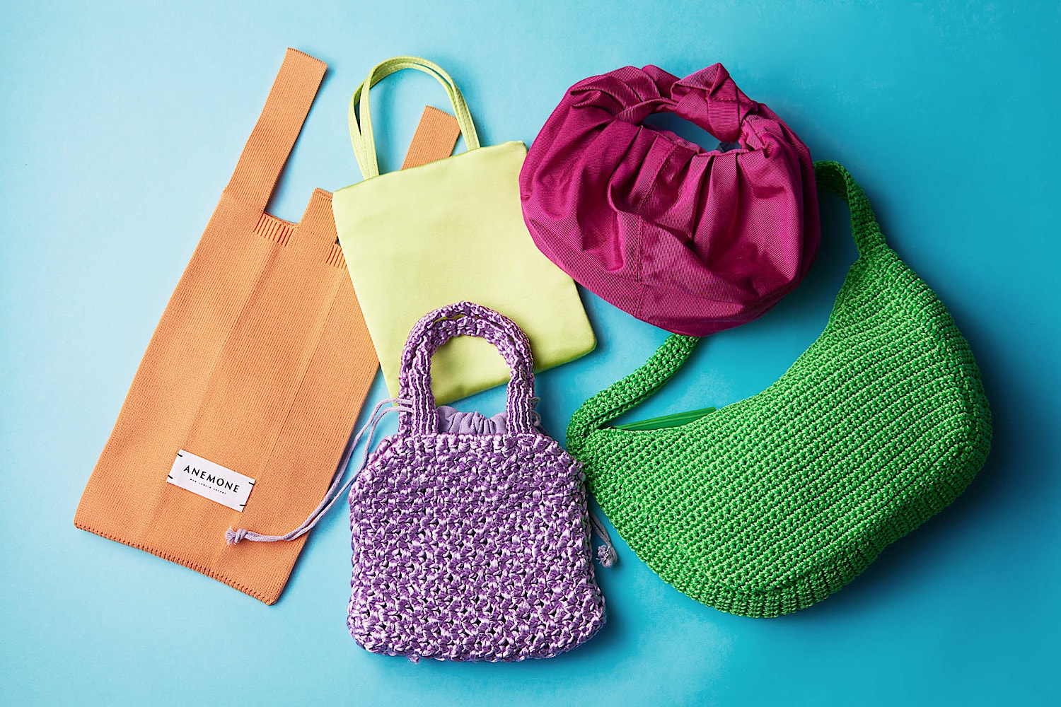 ハイゲージで、しっかりとしたニット素材のバッグ。コンパクトにたためるので、サブバッグとしてカバンに入れておくのも◎。手に取りやすい価格で、カラバリ&サイズともに豊富なところが嬉しい。オレンジニットバッグ〈H27.2×W19.5cm〉¥2,200(アネモネ/サンポークリエイト)
