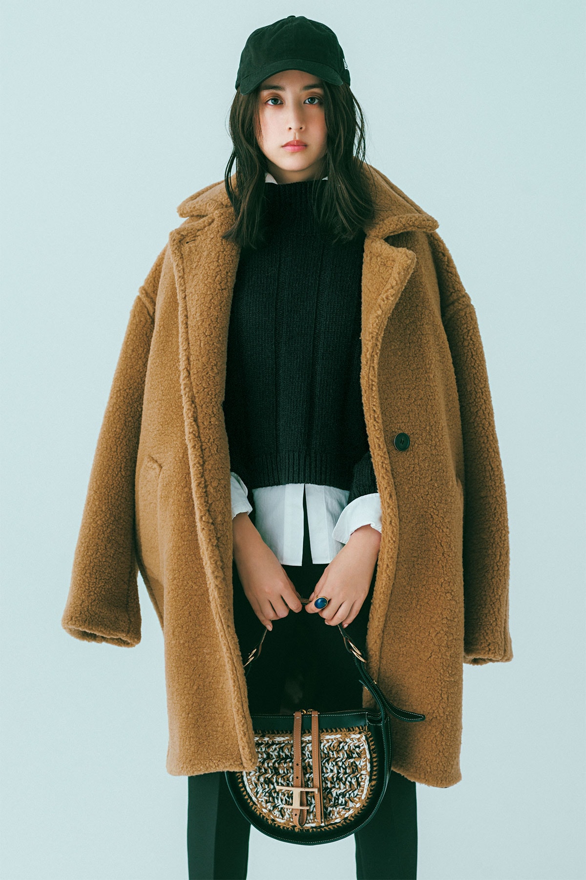 東京のストリートをベースに大人のリアルクローズを提案するチノからは、今年の気分に直球のボアコートが登場。一度羽織れば、このたっぷりしたボリューム感の虜に。