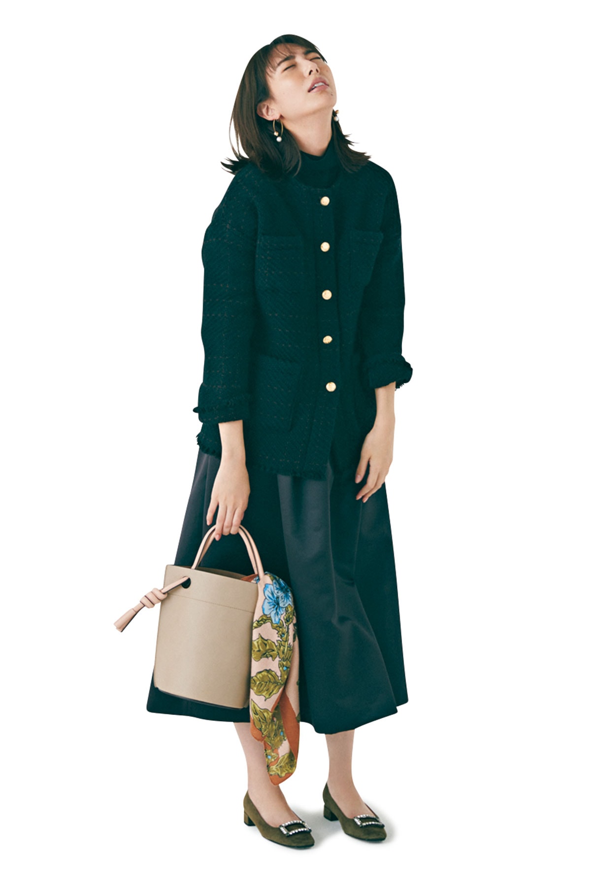 「ふわふわとした素材感は優しげな雰囲気をあと押しします。ベージュは明るめのトーンを」(西尾さん)¥20,900(ジネス/ジネス ペリエ千葉店)