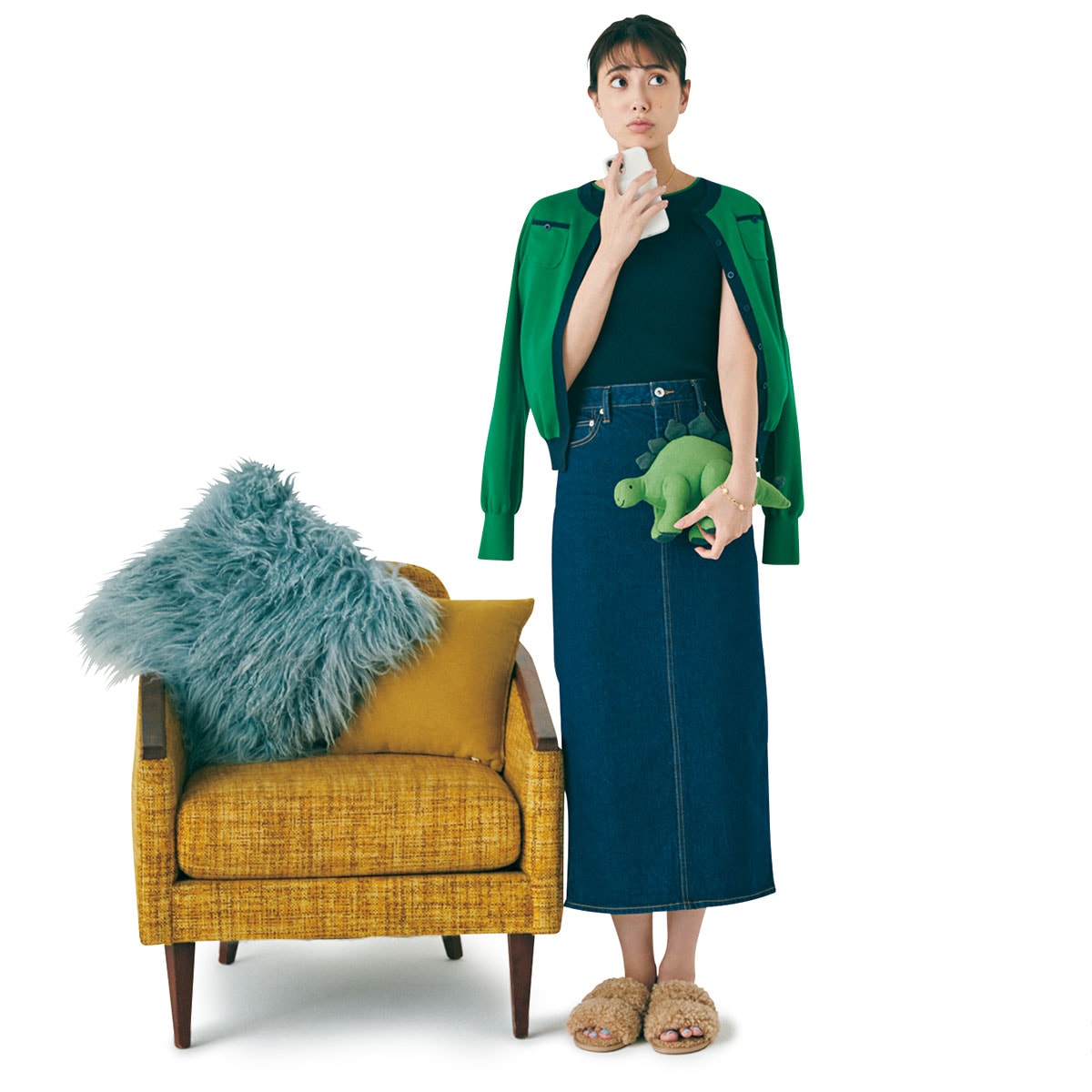「ノースリニットとのセットで上品に」(西尾さん)カーディガン¥35,200 ノースリーブニット¥20,900(ともにCABaN/CABaN Daikanyama) -