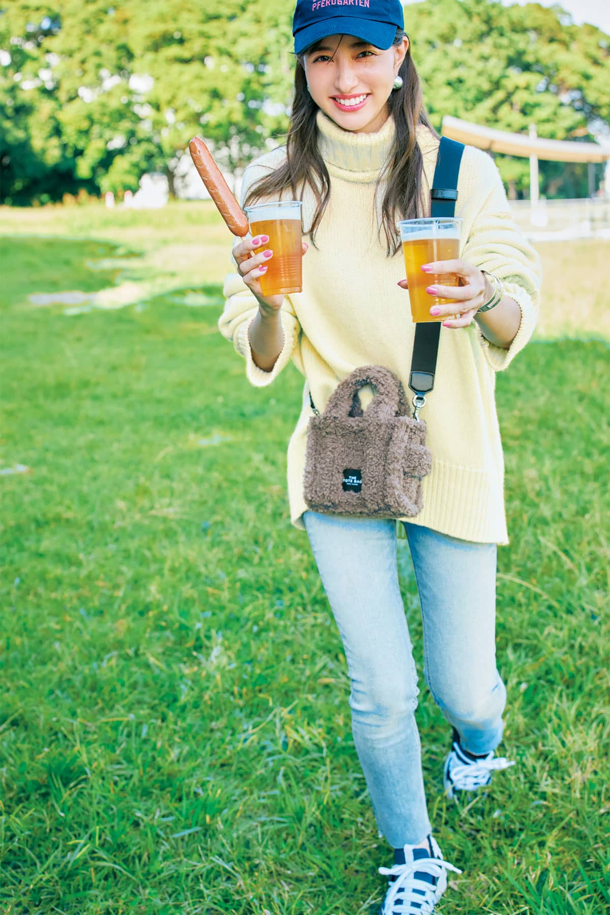 ジップは大きく開くので使いやすく、トイプードルのようなモコモコ感が笑顔を引き出してくれそう♡淡色スキニーは全体を柔らかい雰囲気にまとめてくれます。バッグ[H15×W18×D9.5]¥36,300(マーク ジェイコブス/マーク ジェイコブス カスタマーセンター)パンツ¥31,900(ラグ&ボーン/ラグ&ボーン 表参道店)ニット¥30,800(ギャルリー・ヴィー/ギャルリー・ヴィー 丸の内店)スニーカー¥84,700(ピエール アルディ/ピエール アルディ 東京)帽子¥14,300(バウムウンドヘルガーデン/スピック&スパン ルミネ有楽町店)ピアス¥14,300(バルブス/ZUTTOHOLIC)バングル¥64,900(ボタム トゥ サハト/アダワット トゥアレグ)