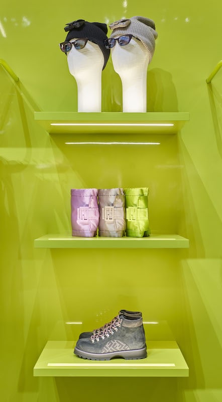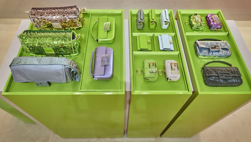 「バゲット」バッグはもちろん、ウィメンズ、およびメンズのレディ・トゥ・ウェアやシューズアクセサリーなど、全てのカテゴリーに「バゲット」がデザインされた遊び心溢れるカプセルコレクションを豊富にラインナップ。ウィメンズでは、アーカイブの中から厳選されたスパンコールやアニマリエパターンをはじめとする25種類の復刻デザインが一堂に介し、メンズでは、日本を代表するバッグブランド「ポーター」とのコラボレーションによるコレクションが展開されます。また、松屋銀座1階スペース・オブ・ギンザでは、コレクションを象徴する鮮やかなワサビカラーの「バゲット チェーン」を限定販売。この機会に是非華やかな会場でフェンディ バケットの世界観を楽しんで。