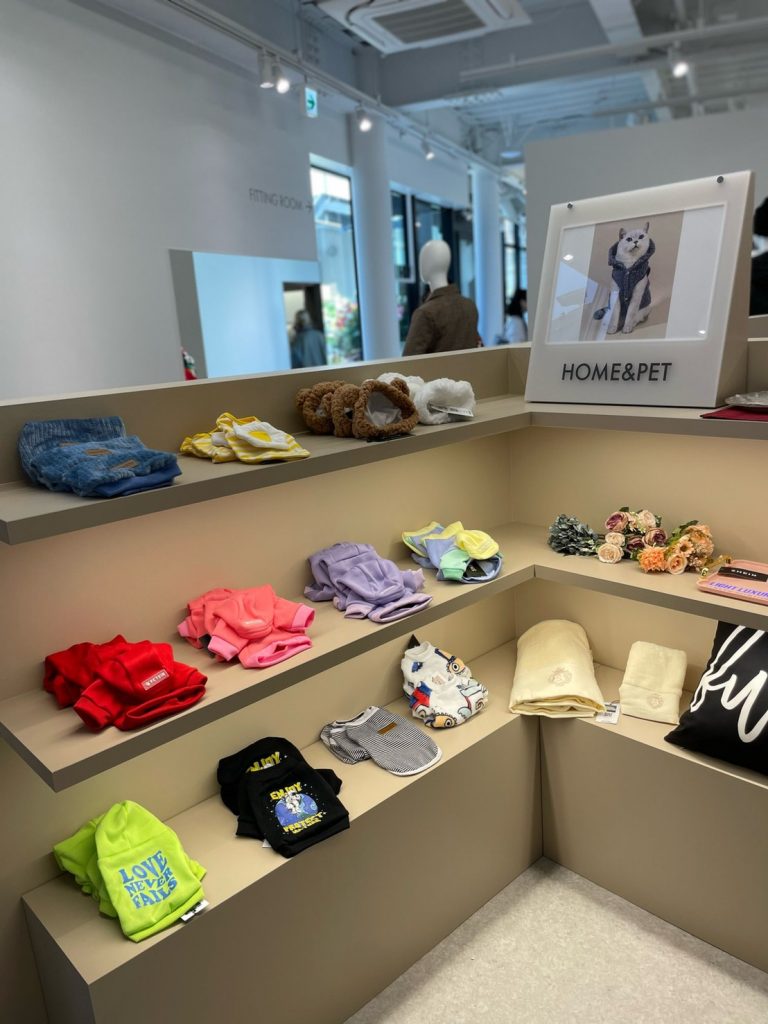アイテムは、トレンド、オフィス、リラックスウェア、トレーニングウェアなど、ジャンルごとのラインナップになっています。中にはペット用グッズも。サイズ選びの難しいシューズなども、実際に試着してその場でオンライン購入ができるので、とても便利!