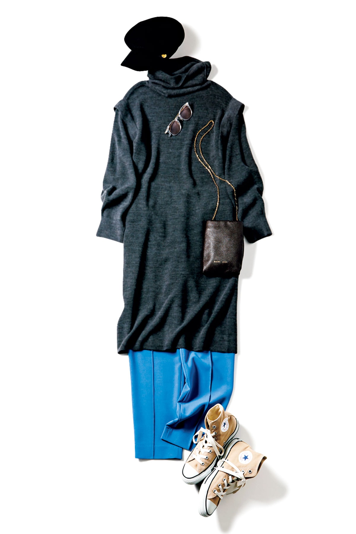 着回し力が高く印象も変わる服とそれに合うベーシックな服。ベーシック服では着こなしにメリハリがつくカラー物も投入を。