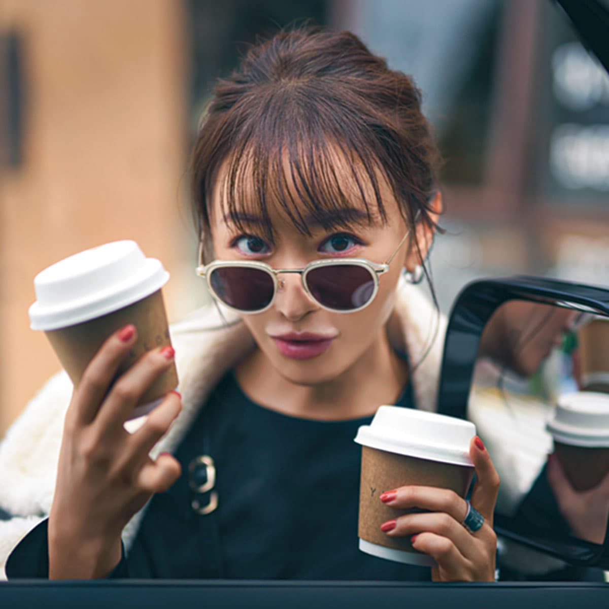 お仕事では女性らしい衣装を着ることが多いですが、普段はカジュアルでかっこいいスタイルが好み。この撮影でも着たボリュームのあるジャケットは今季ワードローブに追加したいアイテムのひとつです。形がキレイで、質感が良くて、着心地がいいというのが洋服選びの絶対条件なので、実際に試着して「あ、このコだ!」と運命を感じるジャケットに出会えたら嬉しいな。実際には現場への行き来で終わってしまう毎日ですが、時間ができたらこんなコーデでおしゃれなカフェに行くのが理想です。