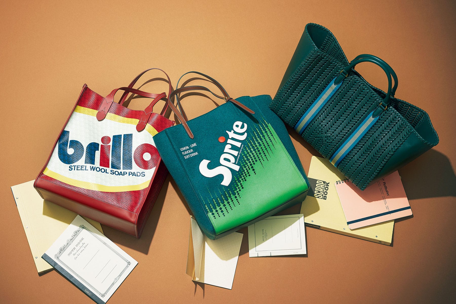 日頃目にするおなじみのパッケージをアニヤらしくユーモアたっぷりに仕上げたコレクションも。小旅行にも行ける絶妙なサイズ感が◎。