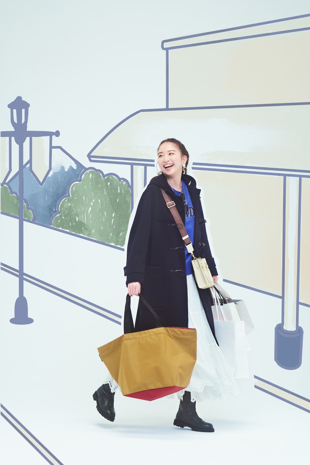 バッグ[H35×W63×D32]¥23,800(エルベシャプリエ/エルベシャプリエ 代官山店)コート¥52,800(ドレステリア/ドレステリア 渋谷スクランブルスクエア店)スウェット¥26,400(アルアバイル)スカート¥27,500(アルページュストーリー)ショルダーバッグ¥104,500(ザンケッティ/ウィム ガゼット ルミネ新宿店)ブーツ¥28,600(カミナンド/グラビテート)イヤリング¥12,100(ココシュニック オンキッチュ/ココシュニック)ネックレス¥28,600(マリハ)サングラス¥55,660(オリバーピープルズ/ルックスオティカ ジャパン カスタマーサービス)