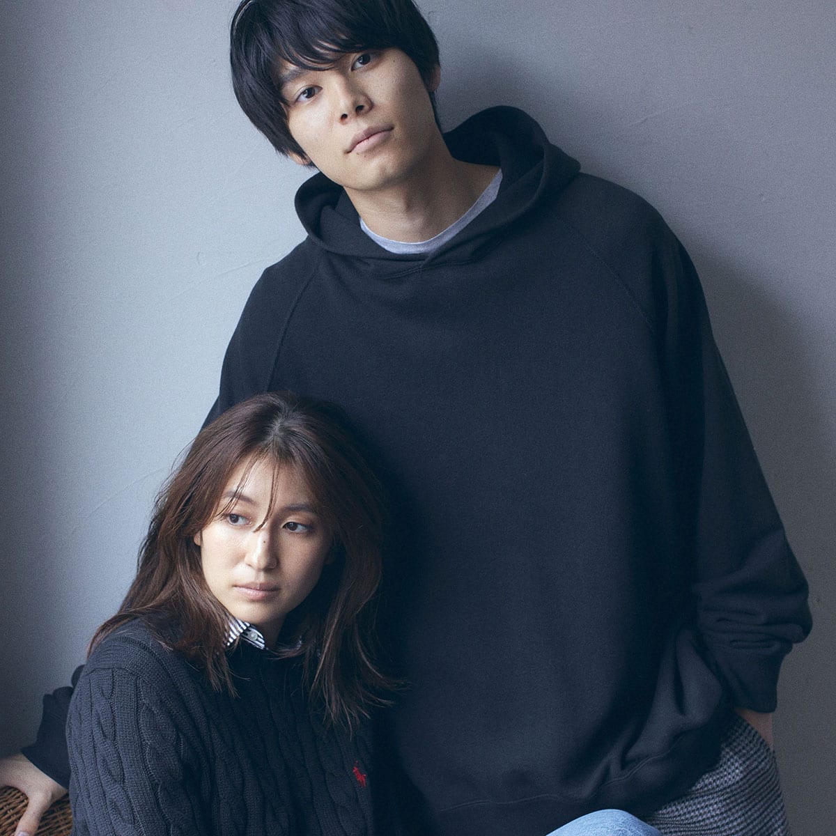 定番スウェット&上質ニットもベーシックな黒をふたりでシェア