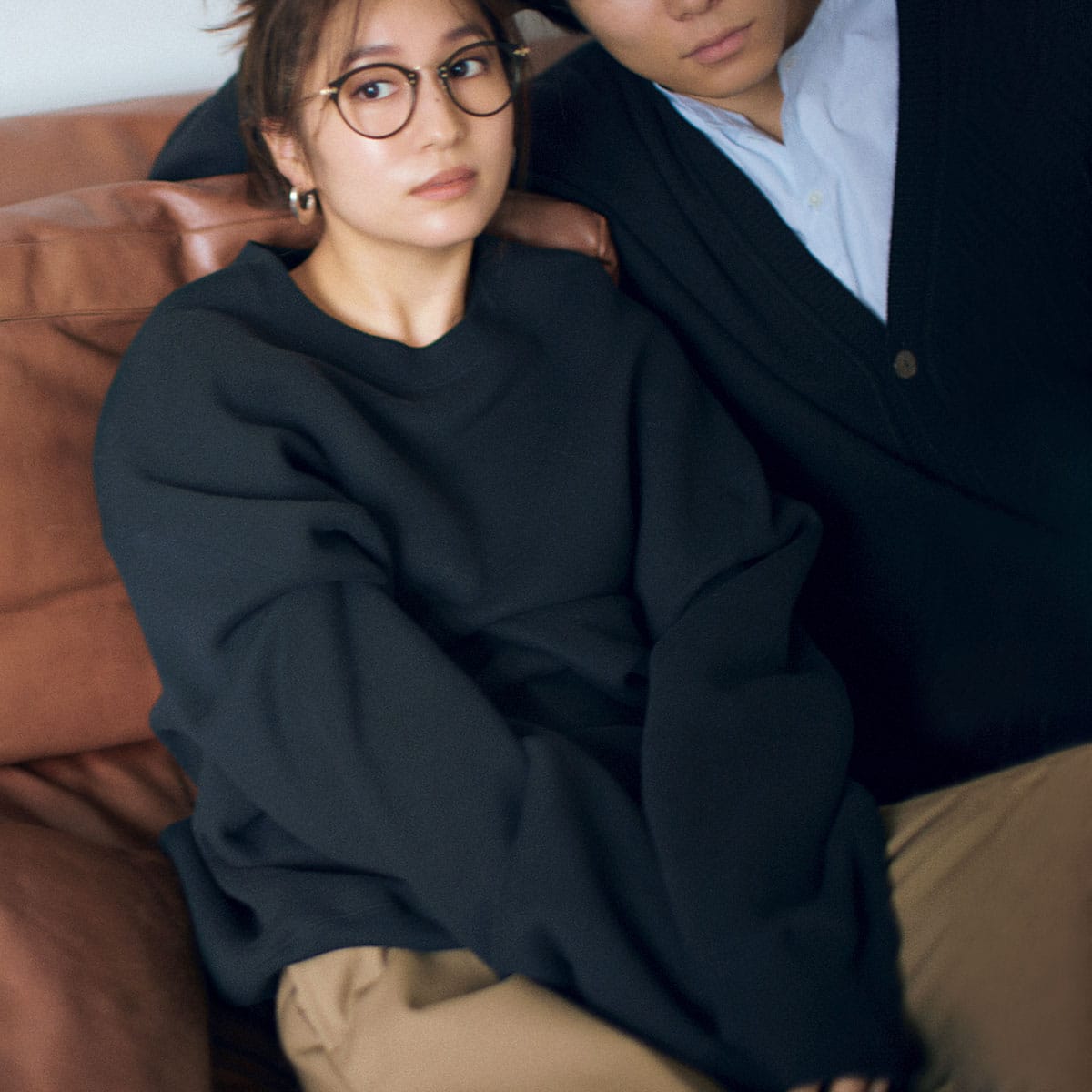 定番スウェット&上質ニットもベーシックな黒をふたりでシェア