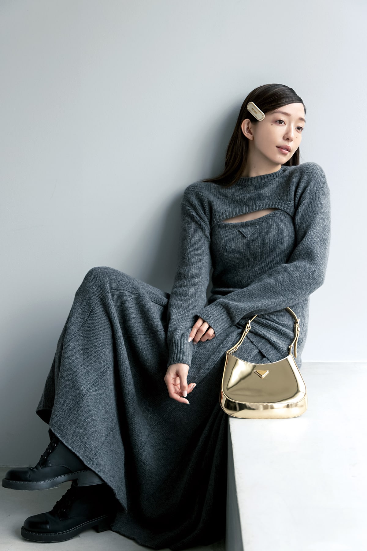 ハイブランドの中には、構築的なデザインにするためや見た目を美しく見せるために、着るときに難しい服やタイトな服もありますが、プラダはとにかく着心地がよく、日常使いしやすいんです。いつもチェックするのは、シンプルな上質ニットや、シーンに合わせてアレンジできるブラックドレスといった、リアルに取り入れやすいアイテムたち。洗練されたシンプルなデザインは、手持ちのデニムやスニーカーと合わせれば自分らしいスタイルに。カジュアルに振ってもスタイリッシュでスマートな女性に仕上げてくれるんです。今季限りではなく長く着続けられる普遍性や、着る人の年齢を選ばないキャパシティの広さも大きな魅力なのです。その反面、トレンドセッター的役割も。プラダが火付け役となったアイテムも数多くありますし、プラダが打ち出すなら間違いない、と思わせる説得力があるのです。「シンプルさに宿るラグジュアリー」―――これがプラダの美学の基本コンセプト。私も流行に振り回されず、長く着られるいいものを少しずつ買い足していきたいという考え方。〝プラダ〞と私のマインドはかなり似ているみたいです。