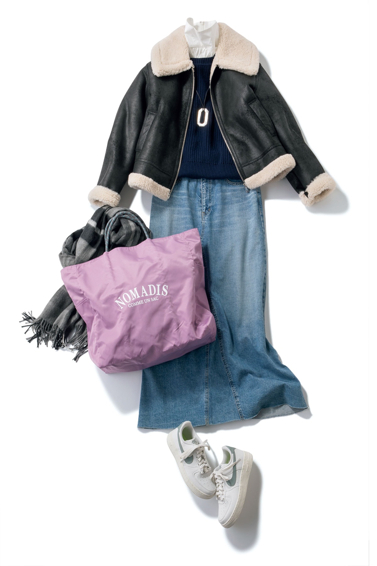 軽くてあったかいムートン風ボアコートで今年らしく。¥14,900(MANGO/ロコンド)