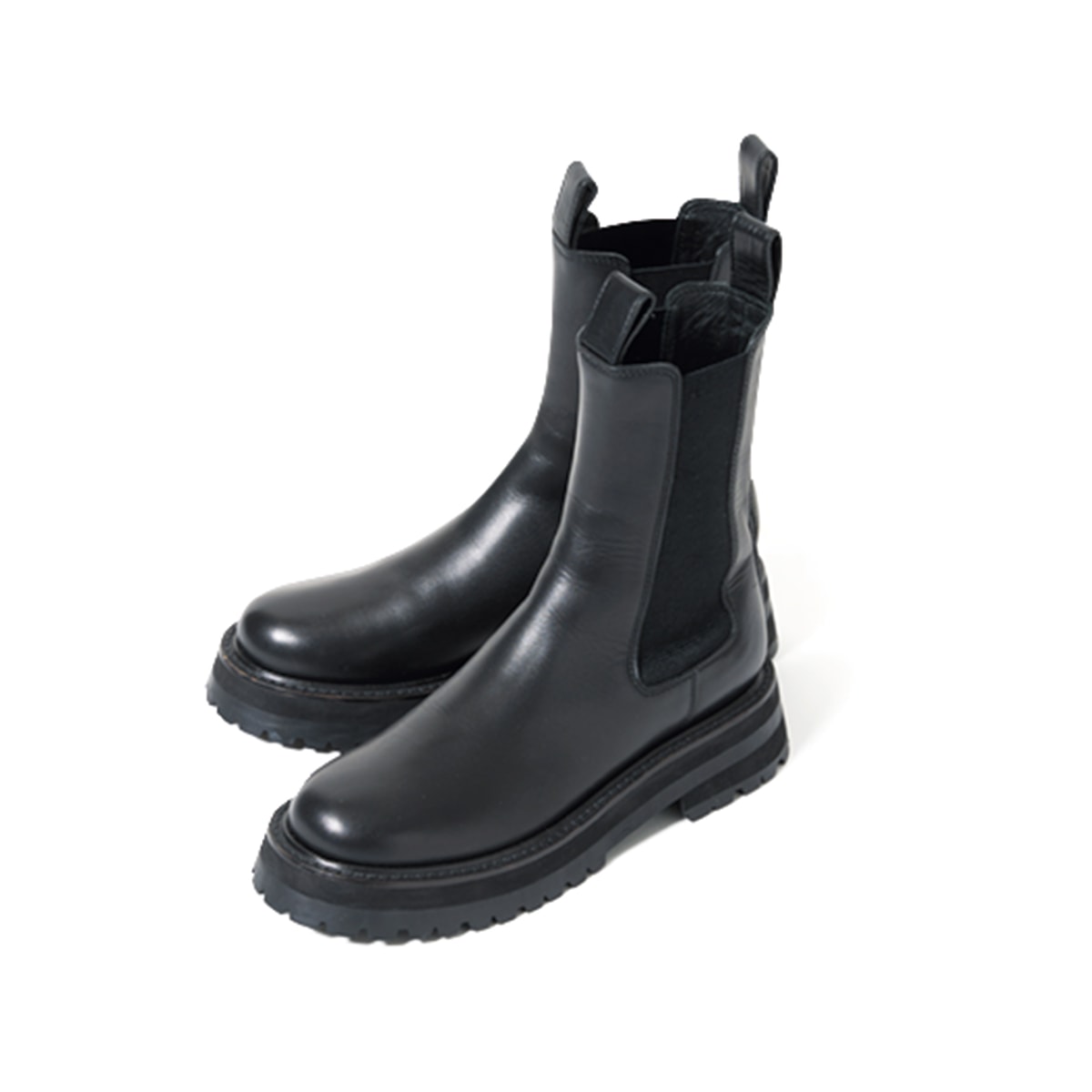 牛革のなめらかな質感とどっしりしたソールのギャップなど、全体のシルエットバランスが綿密に計算されたチェルシーブーツは、履くだけでいつものカジュアルがアップデート!SACRA¥75,900(サクラ/インターリブ)
