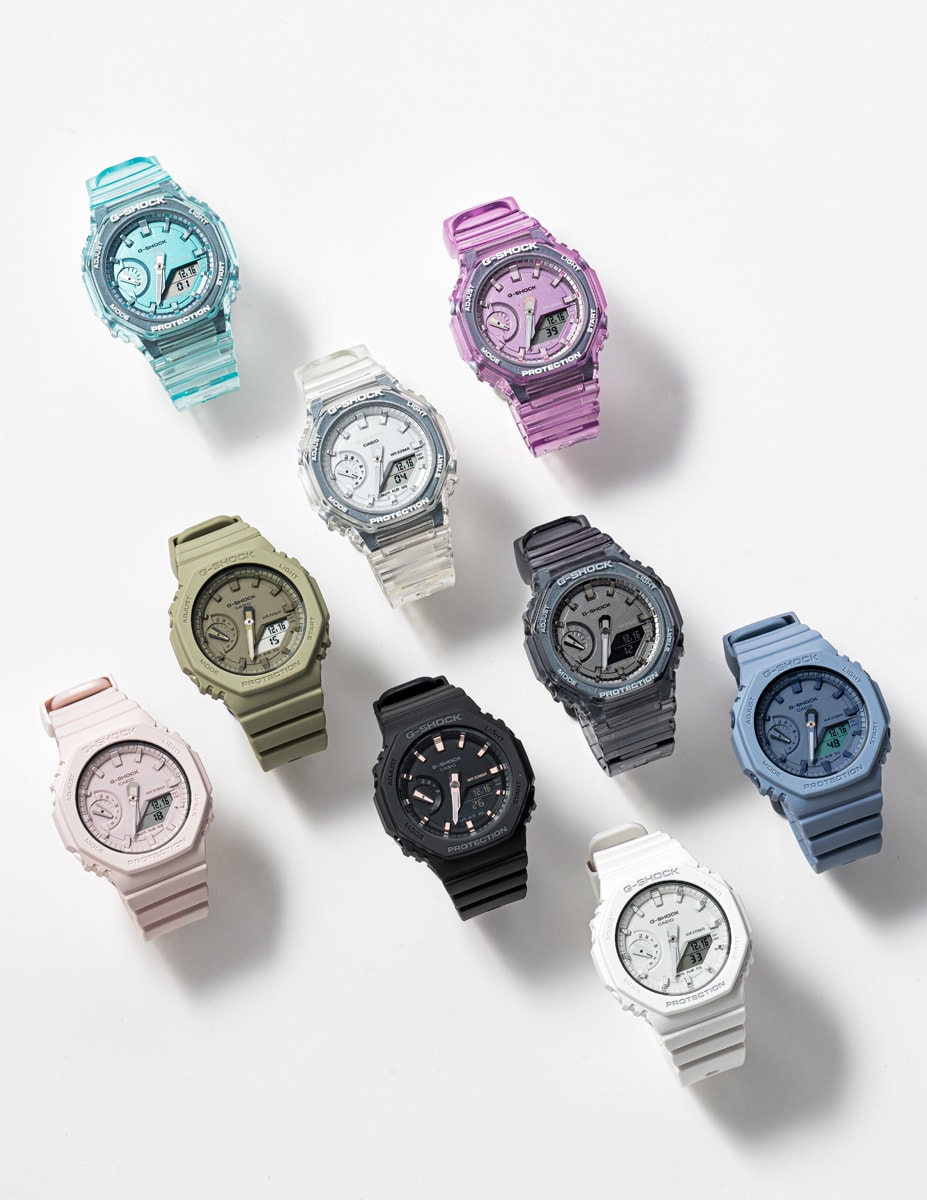 機能的な時計といえば、真っ先に名前の挙がる「G-SHOCK」。スポーティかつちょっぴり男性的なイメージが強いけれど、実はコーデに程よいカジュアル感をくれるおしゃれ色が魅力のモデルも。人気のデジタル・アナログコンビモデルを小型・薄型化した新モデルには、ニュアンスカラーが勢ぞろい。耐衝撃構造や20気圧防水など、G-SHOCKならではのタフな魅力はそのままに、カジュアルコーデにマッチするキュートなカラーが可愛い!