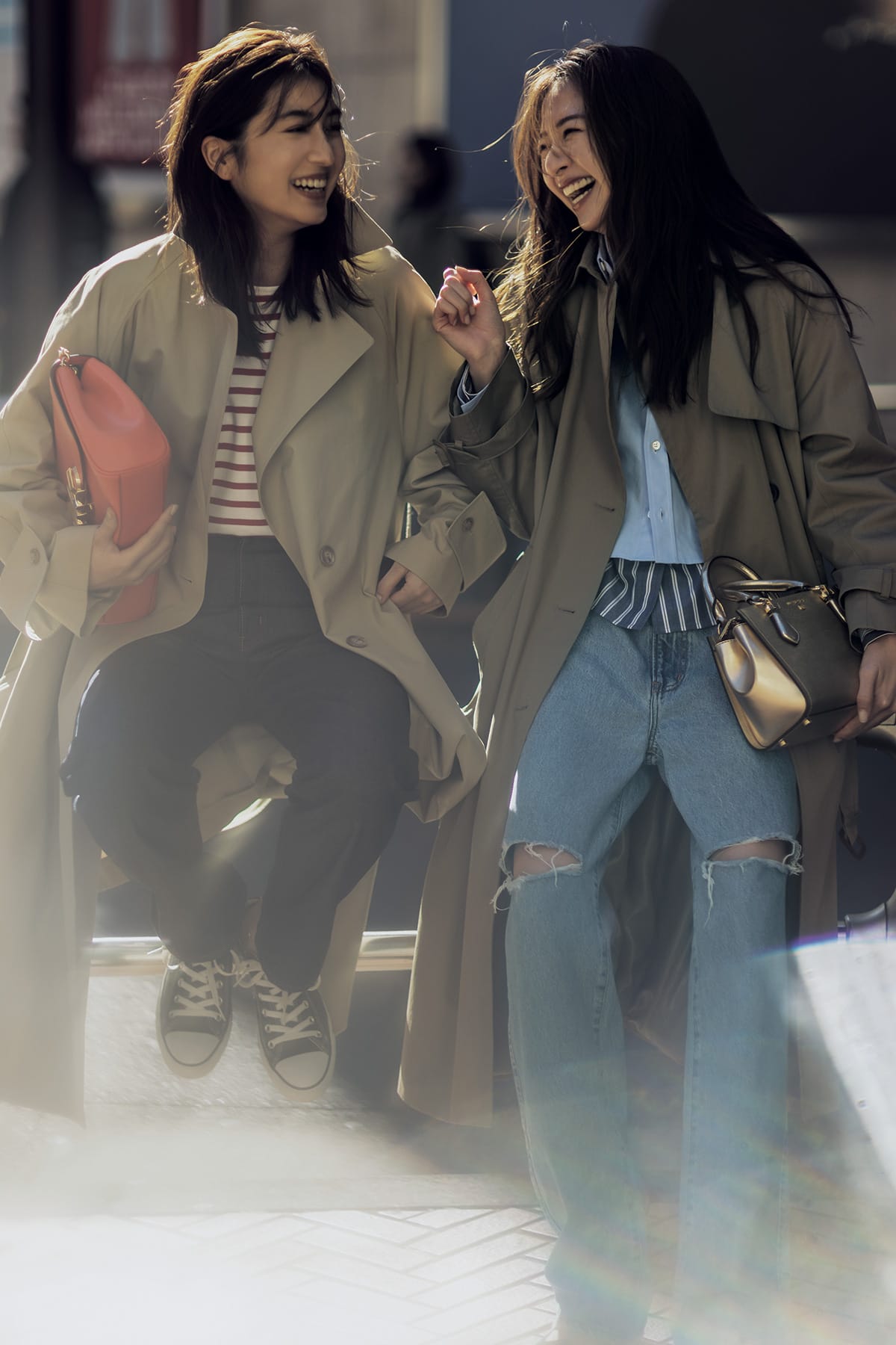 〈トレンチコート〉撮影/水野美隆 モデル/有末麻祐子、鹿沼憂妃 ヘアメーク/小松胡桃(ROI) スタイリング/斉藤美恵 取材/坂本結香 再構成/Bravoworks.Inc