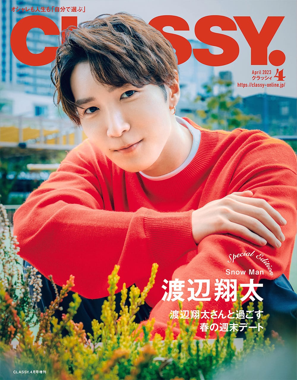 Snow Manの渡辺翔太さんが、CLASSY.表紙に初登場! スペシャルエディション版で披露してくれたのは…週末休日デートのひとコマ。二人の時間を過ごすふとした瞬間に、こんな優しい笑顔で微笑まれたら…胸キュンが止まらない! このほか、中面では全8ページにわたって渡辺さんのスペシャルページを展開。大人の週末デートで…どこに行く? 何食べる? 渡辺さんが見せるさまざまな表情に大注目です♡