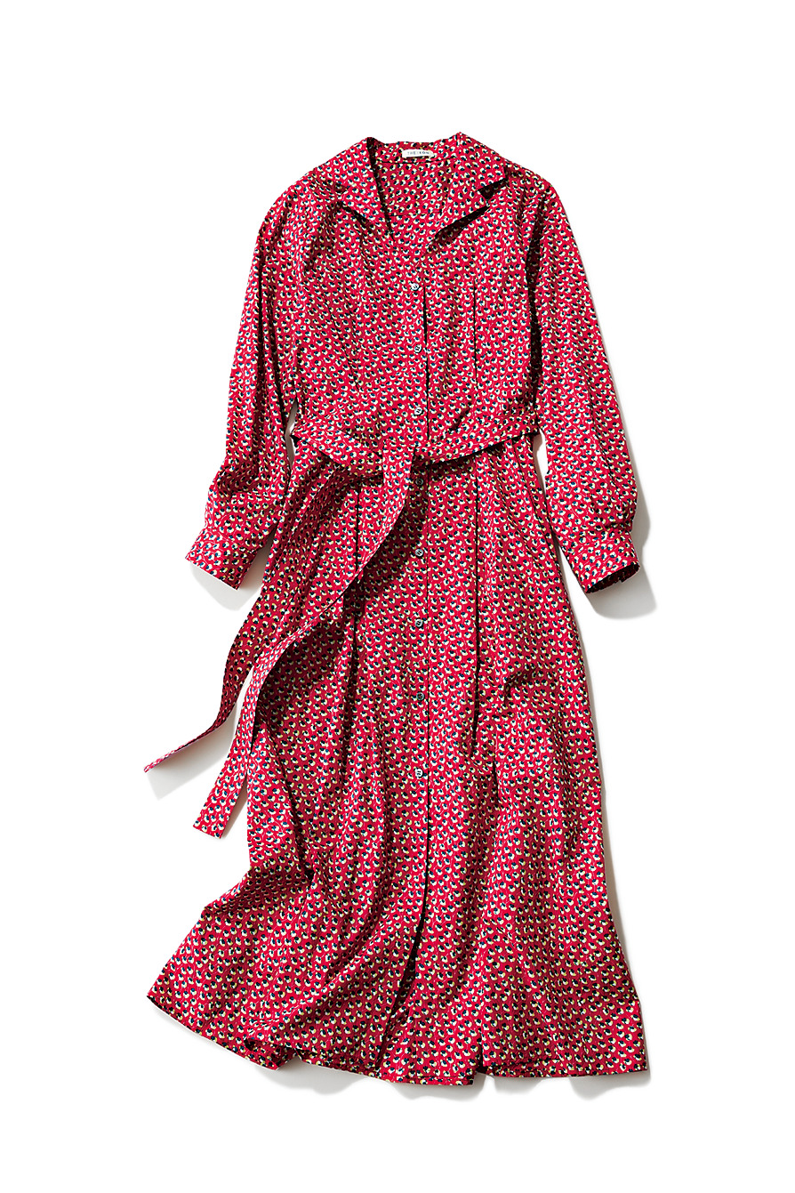 赤に小花柄…女ゴコロをくすぐるキャッチーな一枚。ワンピース¥40,000(アイロン/シッ