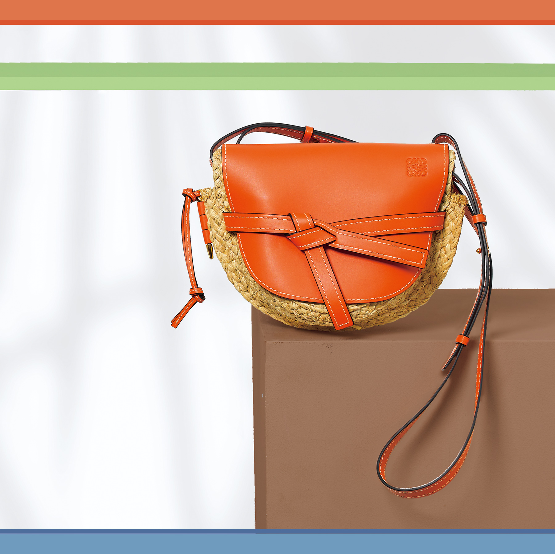 ブランドらしいラフィア×ソフトカーフの組合せで、これからの季節にぴったりの軽やかなデザインに。するりと収まるフラップ、調節可能なストラップ、そして中にはちゃんとスロットもあり、機能面も充実しています。パッと目を引くオレンジが大本命!