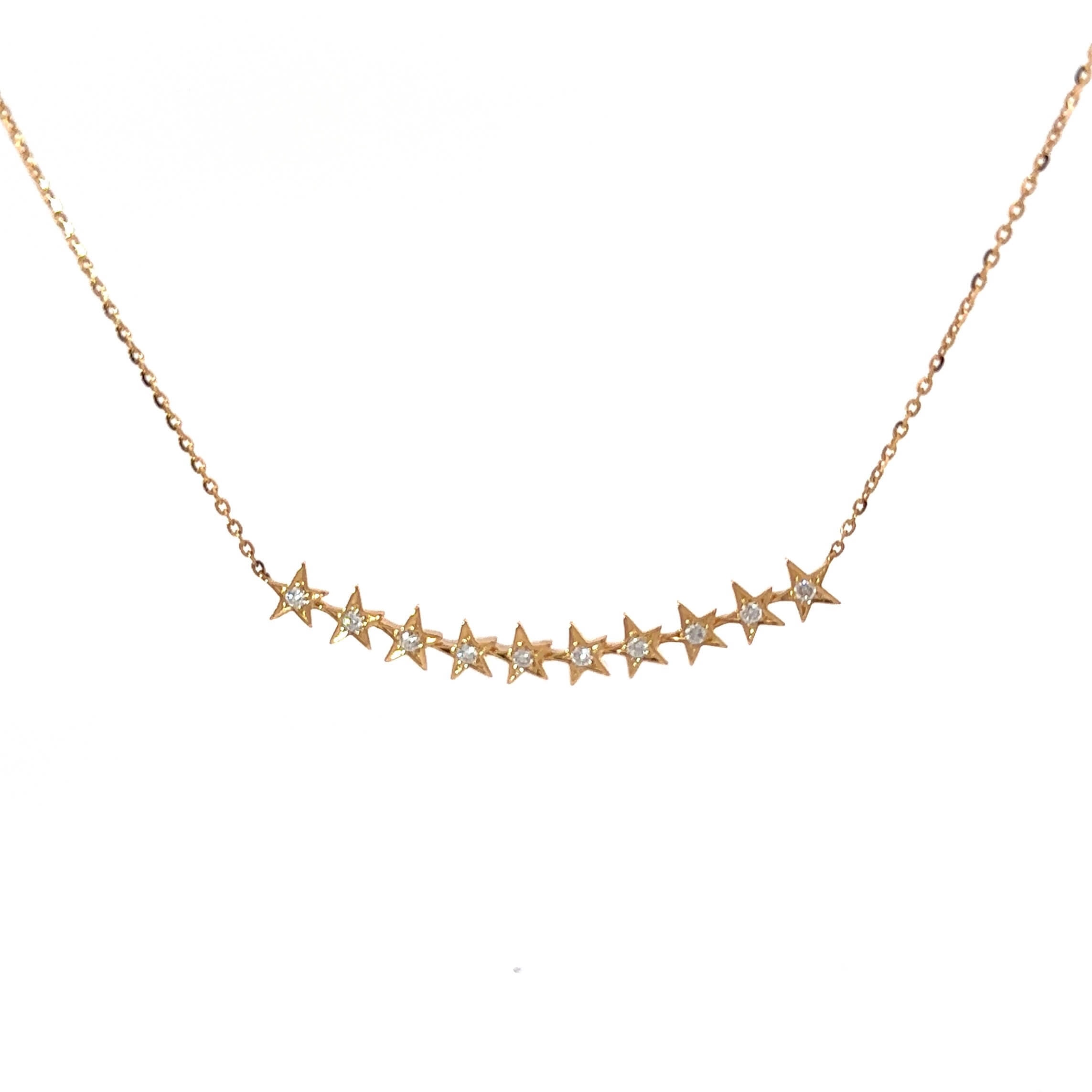 銀座店の10周年にちなんで10石のダイヤモンドとSTAR OF GINZAのモチーフを連ねたモダンなネックレス。フリーアジャスト仕様なので、チョーカー風に着用できるのもポイント。ロングチェインやチャームネックレスと組み合わせて旬のスタイリングを楽しめます。