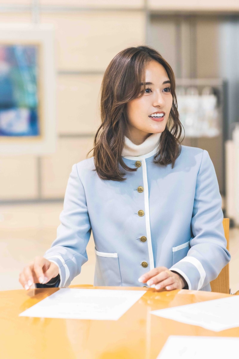 郡司さん:アナウンサーという職業は専門的ですので、社員としてこれからのキャリアを考えたときに幅広くキャリアを積んでみたいと思いました。日本テレビの社員という立場のままできること、学べることってもっとあるんじゃないかって、手探りで模索しながら考えていた時期だったんです。そんなとき、ふとアパレルとアナウンサーって実は遠くないのかもしれないと思って。私たちアナウンサーは声で情報を届けるのが仕事ですが、そのときには衣装を着ている。この2つには親和性があると思いました。