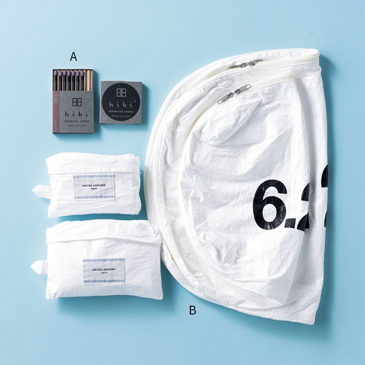 (A)1日の疲れを次の日に残したくないので、滞在先でもリラックスして過ごせるようお香は必ず持って行きます。hibiのインセンスはコンパクトで持ち運び用にぴったり。(B)衣類はUNITED ARROWSで購入したタイベック生地のトラベルポーチに分けて収納。軽量なのに強度抜群で、通気性と防水性も兼ね揃えた優れもの。スーツケース内を整理整頓しやすくて重宝しています。折りたたみ可能なのも嬉しいポイント。