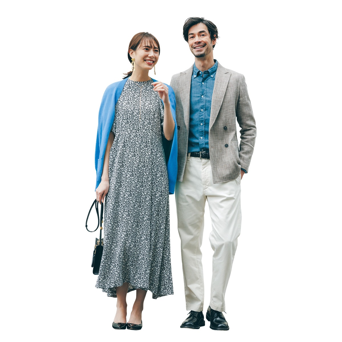[男性]ジャケット¥75,900(ティージャケット/三喜商事)、シャツ¥27,500(k.h.r/ヘムトPR)、パンツ¥24,200(ナナミカ/ナナミカ 代官山)、シューズ¥63,800(アワー レガシー/エドストローム オフィス)、その他/スタイリスト私物